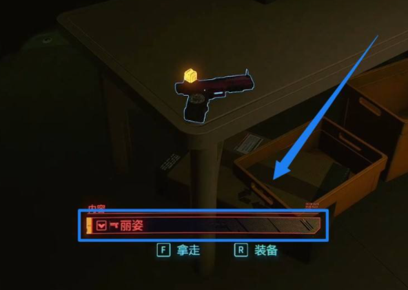 首頁 賽博朋克2077 問答 賽博朋克2077麗姿武器在哪裡? 2022-12-20 1、傳送到圖中標記位置。2、塗鴉石柱對面就是麗姿酒吧。3、往箭頭方向的房間走,進到化妝間。4、往化妝間後門可以進到地下室。5、地下室桌子上擺放的就是麗姿武器。