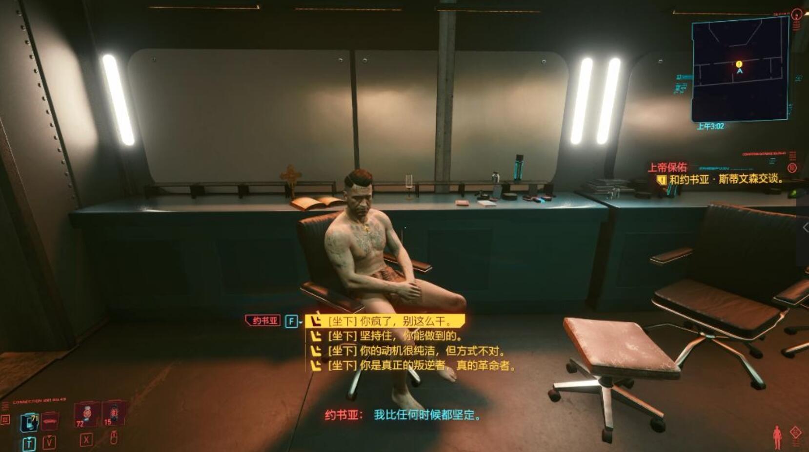 首頁 賽博朋克2077 問答 2077上帝保佑幾個結局? 2022-12-21 一個結局。在上帝保佑的任務中,約書亞會邀請玩家跟他一起禱告,此時不管選擇什麼,最後結局都是他被釘在十字架上死去,區別只是玩家親自殺死他,或站在旁邊看別人殺他。