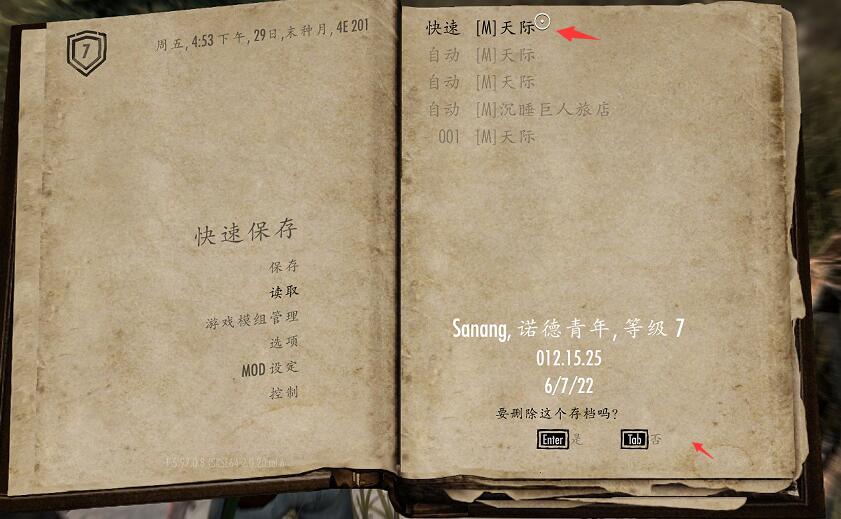 首頁 上古捲軸5:天際 問答 上古卷軸5存檔怎麼刪? 2022-12-25 ESC鍵打開菜單,滑鼠點擊選擇讀取存檔,選中想要刪除的存檔,按X鍵彈出是否刪除存檔的界面,回車(Enter)確認,就刪除成功了。