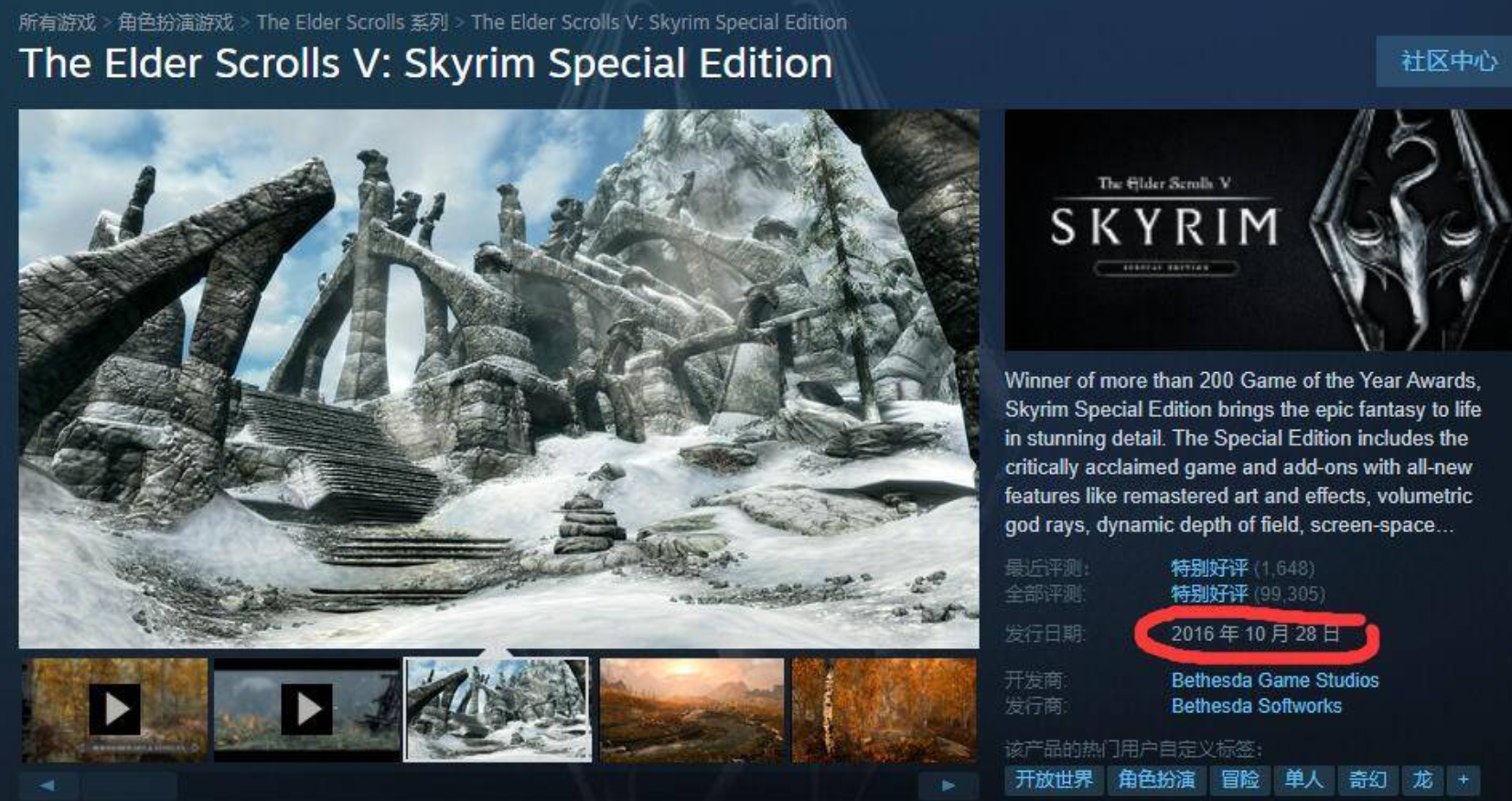 首頁 上古捲軸5:天際 問答 上古卷軸五是哪一年發售的? 2022-12-26 1、首先我們進入Steam搜索這款游戲,點擊進入游戲界面。2、然後我們就可以在界面右側發現這款游戲發售時間為2016年10月28日。