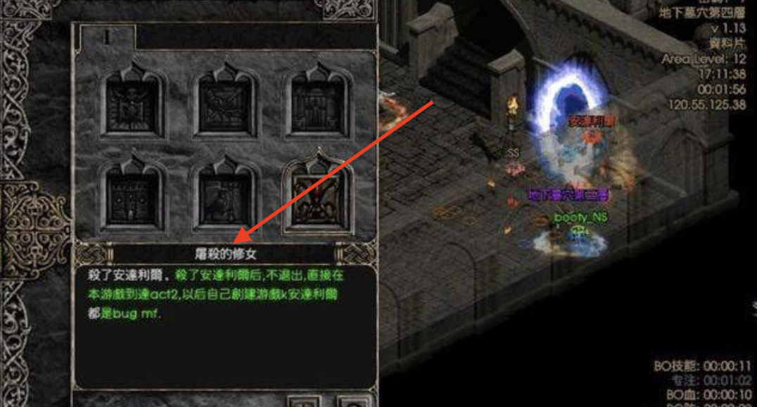 首頁 暗黑破壞神2 問答 暗黑破壞神2如何賭出喬丹之石? 2022-12-28 1、進入暗黑破壞神2游戲,首先前往專屬副本,如下圖所示。2、然後去打噩夢難度的安達利爾,如下圖所示。3、打了之後就有幾率掉落喬丹之石了,如下圖所示。