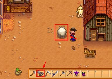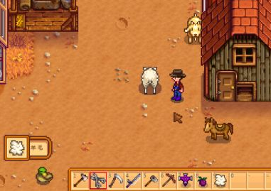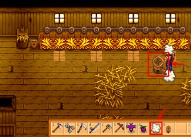 3.成年後的綿羊會變得肥嘟嘟的,這時候就能剪毛啦。花1000去瑪爾妮農場買一把大剪刀,然後對著綿 羊身體右擊,獲得羊毛。