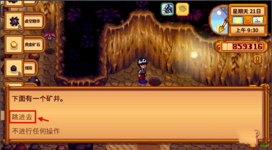 8、在挖礦過程中發現圓形的坑,在窗口中點擊「跳進去」,最高可以跨過15層。