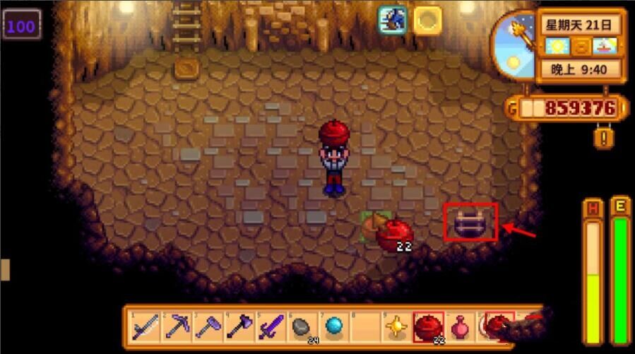 9、不要浪費時間,該炸的炸要不就放置礦梯,有圓坑就跳進去,這樣很容易就到100層了,第1次進入100層觸發齊先生的劇情,之後右擊礦梯繼續往下探索。
