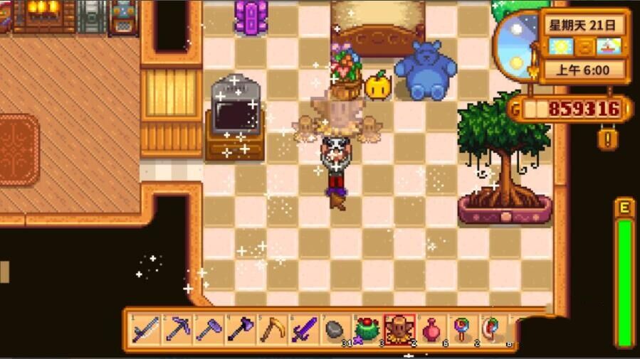 4、料理就不介紹了,選速度快或挖礦類型的,准備工作做完後選擇幸運紫星的日子出發挖礦這裡為大家介紹為啥要選紫星天:紫星天敲石頭發現礦梯的幾率最大。