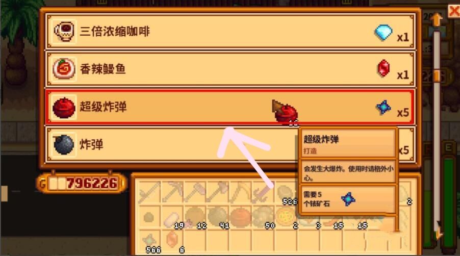 2、准備好一批炸彈,數量越多越好。游戲里的炸彈分為3種,這裡建議大家造威力最強的炸彈,如果玩家在游戲中積累了大量銥石,那麼可在沙漠商人那裡買炸彈。