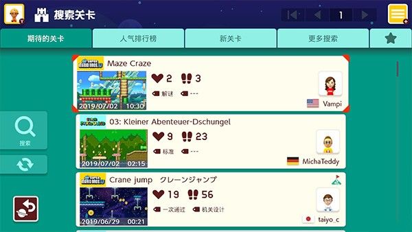 不得不說,和較為溫和的故事關卡比起來,玩家DIY的關卡要「變態」多了。而且這次的搜索功能做得很完善,把所有的搜索條件標籤化,玩家只要勾選相應的標籤就可以搜到自己想要的內容了。