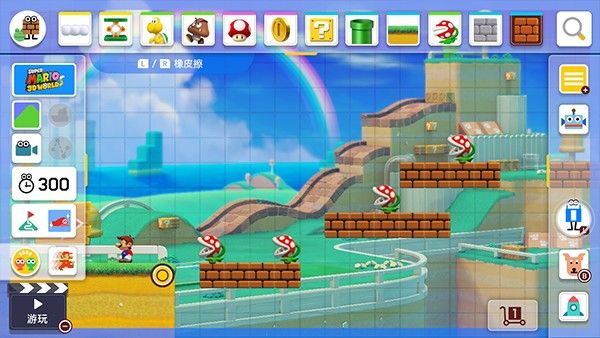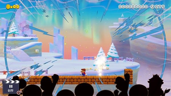打個比方,凡是在故事模式中見到的關卡,都是玩家可以復現出來的,而且可以根據自己的需要作出調整。另外,除了超馬U的一些新元件加入,一些聲音效果元件和視覺效果元件也可以設置到關卡中做觸發,比如歡呼聲,煙花,閃光球效果等。