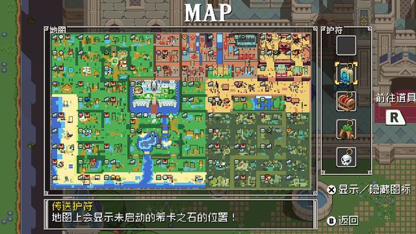 固定地圖,主要就是用道具解謎的部分了,這部分數量不多,設計也比較簡單,被穿插在隨機生成的地圖當中。整體隨機性強的地圖,讓獲得道具,活用能力的過程,顯得不是那麼精妙,整體一環扣一環的感覺變弱了。道具整體的利用率也偏低。好在傳送回去重新探圖很方便。雖然可以理解,但對於塞爾達系列的玩家來說,可能就有些不太讓人滿意了。第一周目,游戲通關時間大約10 小時左右。之後游戲多了不死亡挑戰,節省步數,去掉節奏提示,這些改變難度,多周目反覆游戲的內容。畢竟這也是個塞爾達,要開新檔,可不像一般roguelike那麼輕鬆,動力還是有些不足。