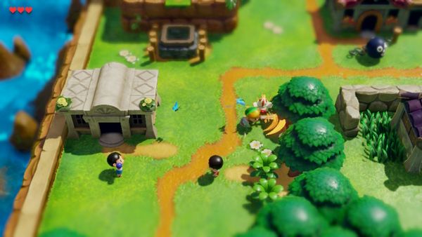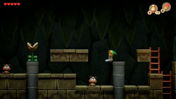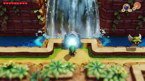 值得注意的是,大地圖畫面的上下邊緣有一種刻意做出的朦朧效果,房間和迷宮裡並沒有這種效果,不知是為了突出遊戲主題,還是考慮到大地圖的性能優化問題。在GB版本中,大地圖被分割成了很多16*16的小型區域,需要切屏才能進入下一個區域,而NS重製版直接做成了一張無縫銜接的大地圖,的確讓玩家方便了不少。