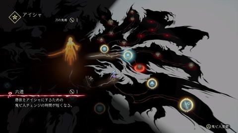 但是更改鬼人也有個難點。這次試玩的是PS4版用右搖桿就能切換,切換也需要一定時間,而戰斗時需要同時躲避敵人,對筆者來說稍微有些困難。這個延遲本身能夠通過習得技能減少時間,很在意這單的人可以用「技奧樹」的技能樹優先點亮這個技能。