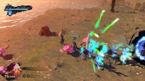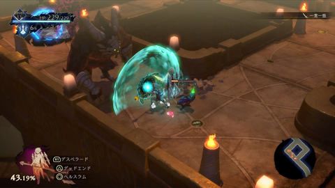 最後要介紹一下用斧子的鬼人「威爾」。揮動巨斧的行動雖然較為遲緩,但是攻擊力高,僅靠普通攻擊就能揮飛很多敵人。技能范圍也很大,和蒂亞相比操作簡單,正常操作就能打倒很多敵人,非常爽快。而且固有技能「防禦」能在前方展開防禦盾,慢慢前進,耐久力很高,更加適合新手。