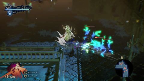 第一場BOSS戰用扎夫為主進行時,面對導彈一般的攻擊也沒能躲開,戰敗。切換成可以「沖刺」的阿伊莎之後卻贏了,這時發現要從初期開始就讓人適應切換鬼人的操作,可以說非常優秀了。