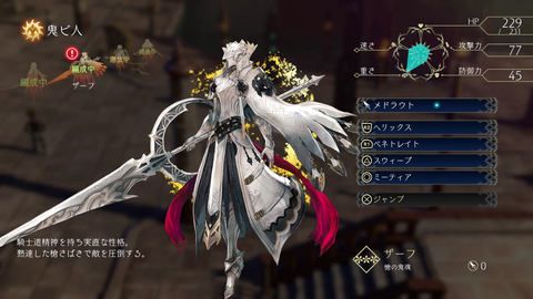 在初期的羅姆草原地圖上,除了用刀的阿伊莎之外,還有一種叫扎夫的西洋騎士風的鬼人會成為同伴。使用槍的突進攻擊和固有技能的「跳躍」非常獨特,和同樣以近距離攻擊為主的阿伊莎相比,攻擊范圍更加立體。