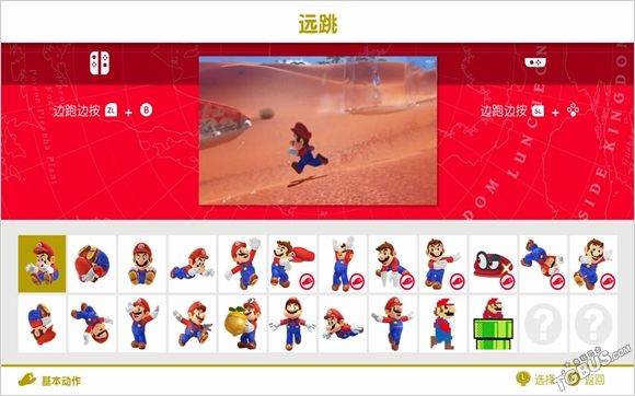 馬力歐系列自從2D時代以來就一直遵循著「跑、跳、蹲」這三大核心玩法,隨著三十多年來的發展,圍繞著這三個核心,馬力歐游戲中加入的小動作越來越多。到了《超級馬力歐:奧德賽》中,映入眼簾的是「遠跳、三級跳、後空翻、側空翻……」看著那兩排動作表,你甚至會懷疑自己正在玩一款FTG游戲,光是要記熟游戲中所有的操作指令就已經需要花上相當的一段時間。