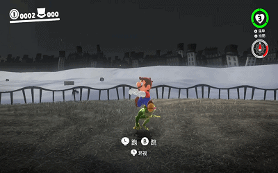並且在本作中,系列首次將馬力歐的帽子作為了攻擊武器,通過扔出帽子來進行戰斗亦或是與環境進行互動。而圍繞著「扔帽子」的設計也衍生出一系列全新玩法,也就是這一「扔帽子」的動作,讓雙持JC充分發揮了用武之地。游戲中扔帽子的操作可以通過按鍵實現,但同時也可以通過體感達成,只需要拿著右JC的手模仿扔帽子的動作輕輕向前一甩,馬力歐的帽子也就跟著飛了出去。當然這一體感操作在JC合體和pro手柄下也同樣適用,不過這樣的體感有多別扭相信玩家心裡自然都是有X數的。或許就一個便利的體感還並不能夠完全體現出雙持JC的優勢,畢竟直接通過按鍵也能夠達成,但再配合上上方的組合動作就大大不一樣了。在諸多需要玩家起跳的同時扔出帽子,亦或是在扔帽子的同時利用右搖桿調整視角時,雖然只是減少一個需要手動按鍵扔出帽子的步驟,卻能夠讓玩家的整個操作流暢度提高個檔次。此外像是扔出帽子後再朝著上下左右四個方向晃動JC進行二段位置調整,或是在翻滾、爬樹時雙手甩動JC進行加速,在一些細節功能上雙持JC的方便準確程度也是其他操作方法所完全無法比擬的。
