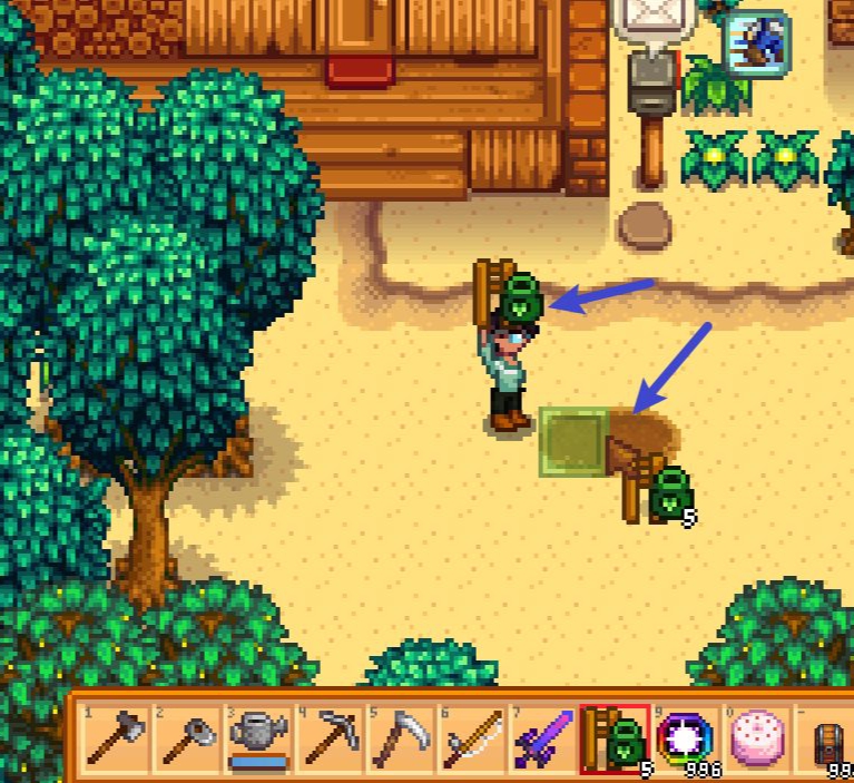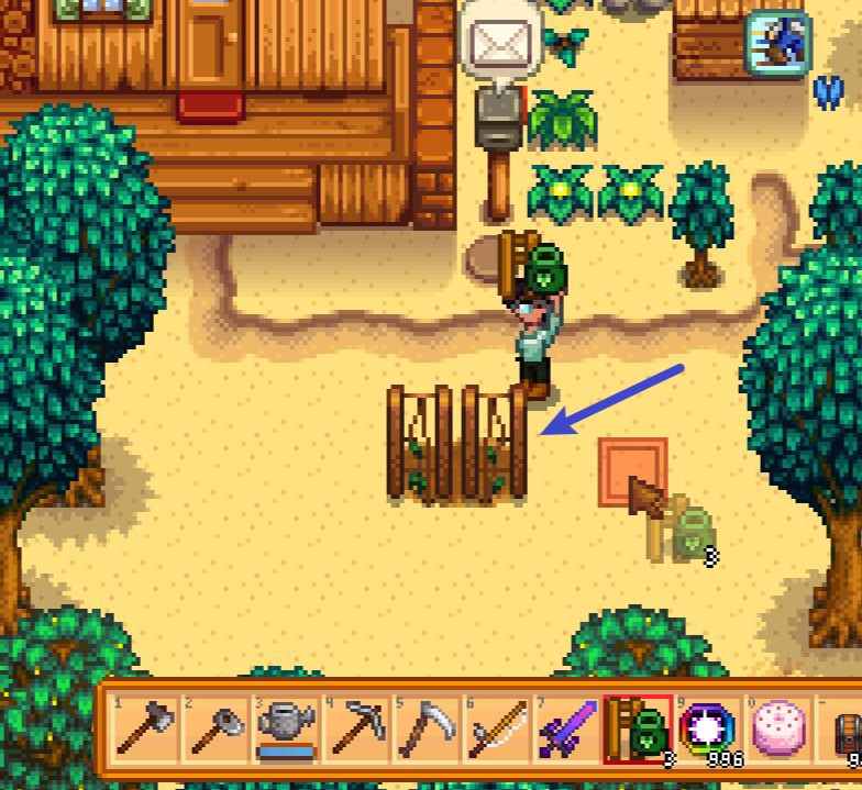 4.拿出購買的作物,右擊挖的坑放置架子就可以了。