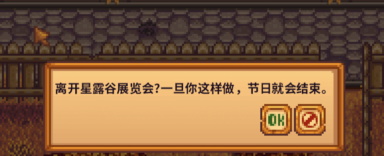 首頁 星露穀物語 問答 星露穀物語展覽會怎麼結束? 2023-01-03 兌換完禮物以後,隨便往一個方向走,離開整個展覽會區域就會彈出對話框,點OK就可以結束活動了。展會的時間是無限的,不離開就不會結束。