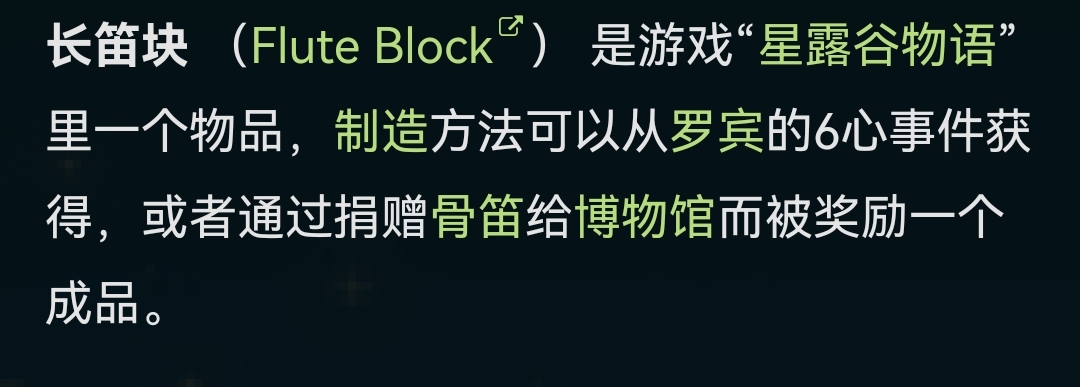 首頁 星露穀物語 問答 星露穀物語長笛塊怎麼獲得? 2023-01-03 長笛塊 (Flute Block) 是游戲「星露穀物語」里一個物品,製造方法可以從羅賓的6心事件獲得,或者通過捐贈骨笛給博物館而被獎勵一個成品。