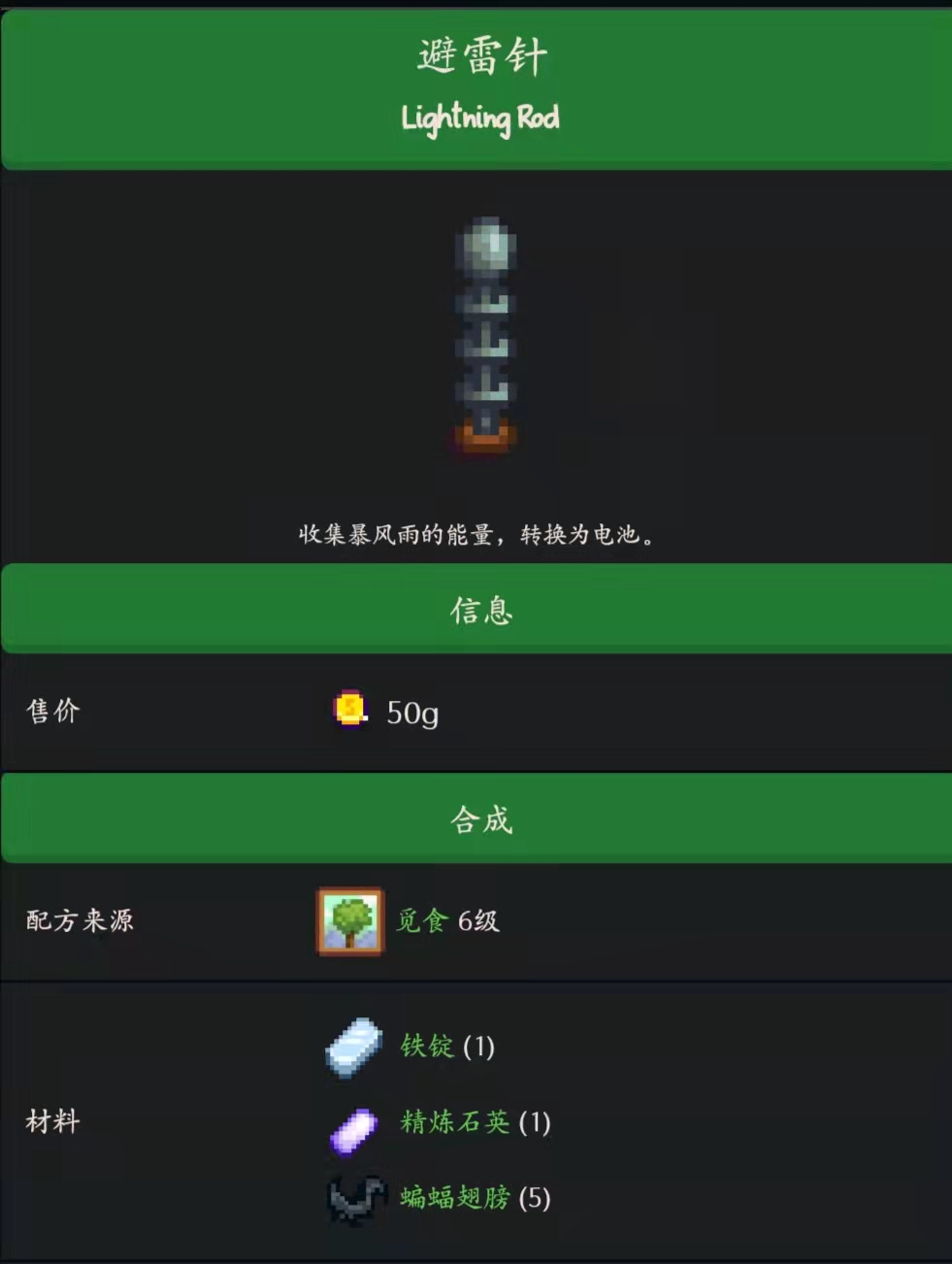 首頁 星露穀物語 問答 星露谷避雷針放在哪裡好? 2023-01-03 避雷針位置介紹:在游戲《星露穀物語》中,避雷針可以防止玩家的農田被擊壞還可以蓄電,放置的時候盡量別離田地太近,防止燒起來,玩家可以直接在家旁邊的儲物箱旁擺上一排。