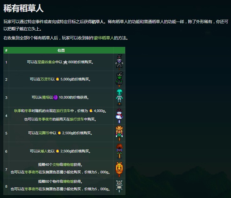 首頁 星露穀物語 問答 星露穀物語8個珍奇烏鴉在哪? 2023-01-03 星露穀物語中,珍奇烏鴉是外形稀有的8個稀有稻草人的錯誤翻譯,這8個稀有稻草人可以通過節日、賭場、豬車、矮人、夜市等地點購買獲得,另外還可以通過向博物館捐贈40個文物獲得。