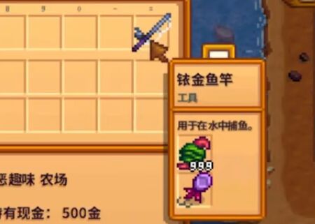 首頁 星露穀物語 問答 星露谷switch魚餌怎麼掛? 2023-01-03 首先,獲取魚竿和魚餌。在海邊漁夫威利那邊購買升級版的魚竿,魚餌可以在威利那邊購買,也可以根據配方製作出來。然後點擊背包,把魚餌拉到魚竿上,這樣就把魚餌弄在魚竿上了。