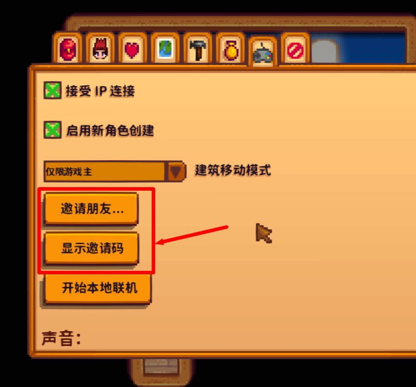 首頁 星露穀物語 問答 星露谷怎麼讓朋友加入? 2023-01-03 1.點擊合作。2.點擊主持。3.點擊主持新農場。4.點擊設置聯機開始的初始布局和其他一些設置。5.點擊ok進入游戲之後,打開背包欄點擊選項。點擊直接邀請朋友加入,或顯示邀請碼讓對方輸入加入。