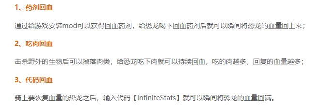 首頁 方舟:生存進化 問答 方舟恐龍回血代碼是什麼? 2023-01-05 在方舟生存進化中,恐龍回血有三種方法,藥劑回血、吃肉回血、代碼回血,其中代碼回血只需要騎上需要恢復血量的恐龍然後輸入代碼lnfinitestats就可以恢復恐龍血量。