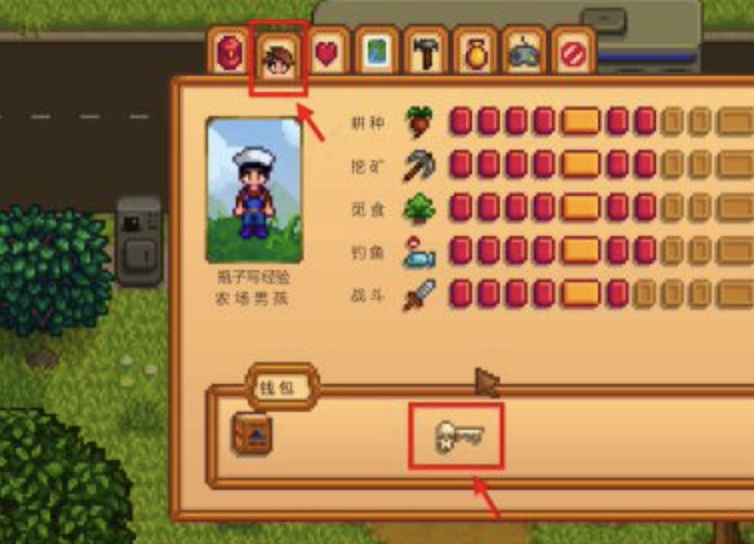 在星露穀物語這款游戲中,骨頭鑰匙是用來觸發沙漠地牢劇情的,游戲設定將鑰匙放進錢包。按E鍵查看個人技能,可以查看到多了一把鑰匙。