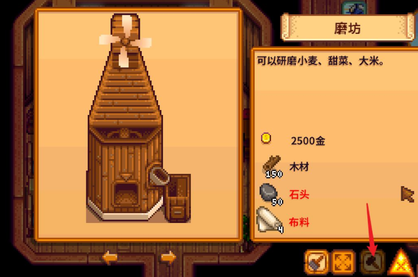 首頁 星露穀物語 問答 星露穀物語大麥粉怎麼製作? 2023-01-05 1、進入羅賓的店鋪,和木匠對話。2、列表點擊建造農場建築選項。3、點擊磨坊選項,在農場建造磨坊。4、拿起作物小麥,將小麥放入磨坊的送料口。5、一段時間後採集磨坊,即可獲得大麥粉。
