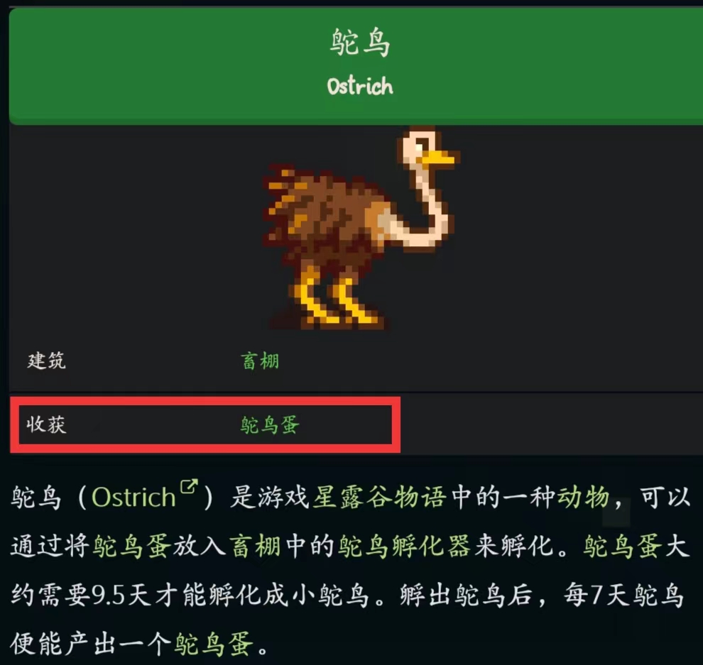 首頁 星露穀物語 問答 星露穀物語鴕鳥有什麼用? 2023-01-05 鴕鳥作用介紹如下:在游戲《星露穀物語》中,鴕鳥是生活在畜棚中的一種農場動物,作用主要是每個星期都會產下一枚鴕鳥蛋,而鴕鳥蛋售價為600g。