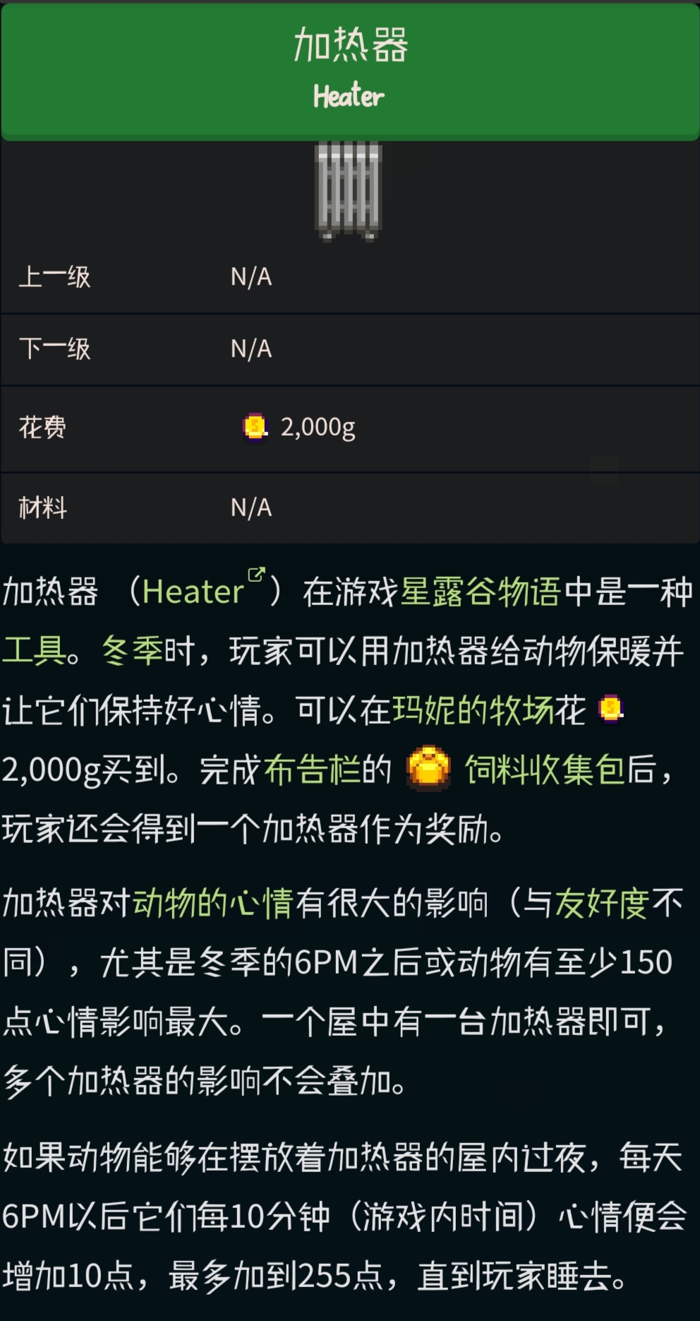 首頁 星露穀物語 問答 星露穀物語加熱器有必要嗎? 2023-01-06 在星露穀物語這款游戲中,加熱器是非常有必要的。如果玩家在雞舍、牲口棚中放置加熱器,能夠提升動物的心情值,讓動物在冬天也保持高產。動物在有加熱器的環境中睡覺好感度可加至255點。