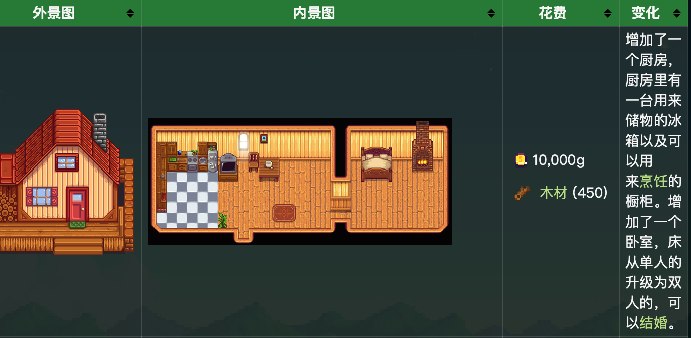 首頁 星露穀物語 問答 星露穀物語里第一次升級農舍需要什麼資源? 2023-01-08 第一次升級農舍我們需要准備10000金幣和450木材,之後去找木匠鋪的羅賓進行升級即可,主要變化是會增加一個廚房(廚房中配備冰箱以及櫥櫃)可以用來烹飪,另外還增加了一個卧室。