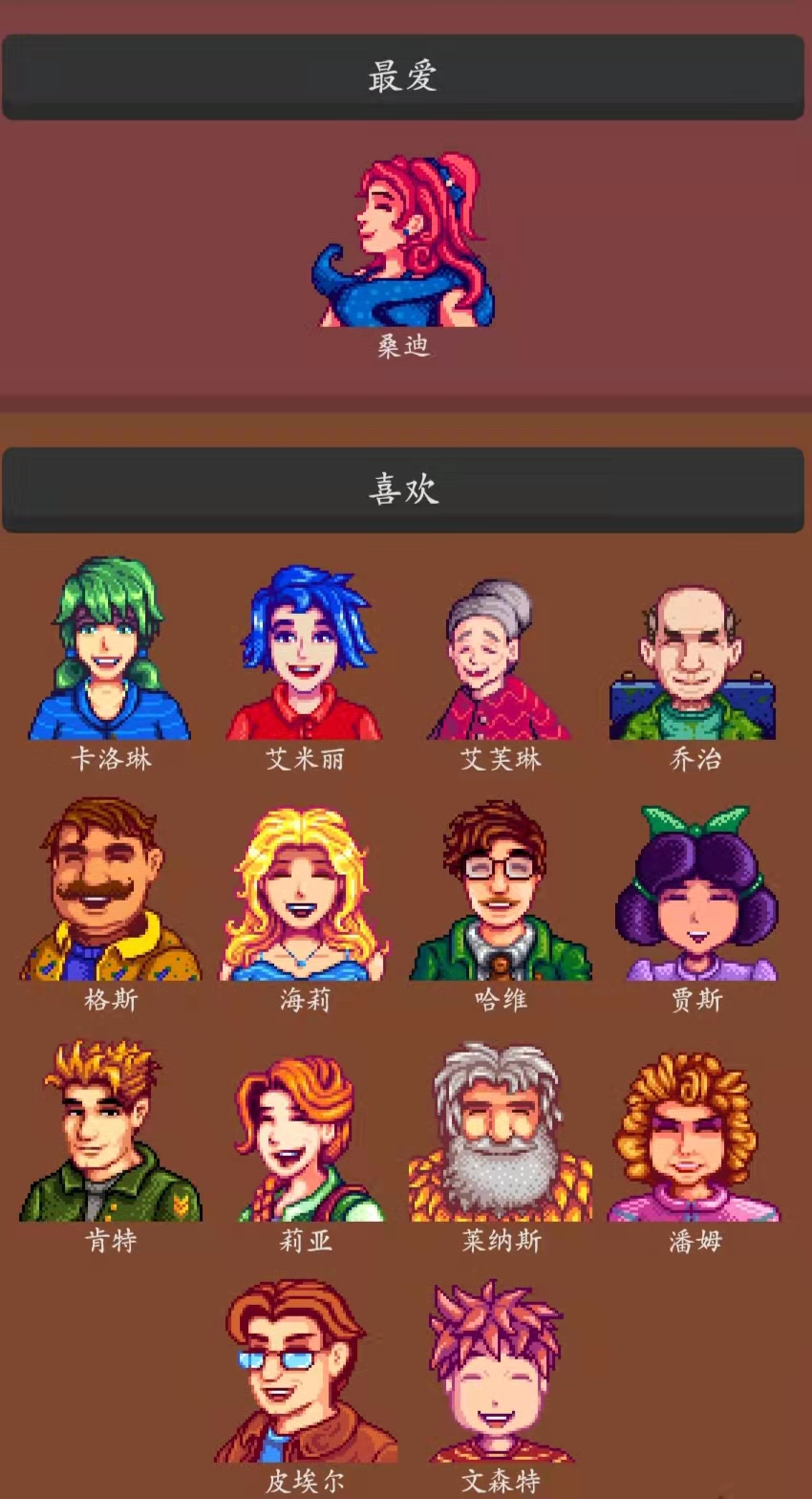 首頁 星露穀物語 問答 星露谷黃水仙送誰? 2023-01-08 星露谷黃水仙送法介紹:在游戲《星露穀物語》中,黃水仙是桑迪的最愛,其他喜歡黃水仙的npc有:卡洛琳、艾米麗、艾芙琳、喬治、格斯、海莉、哈維、賈斯、肯特、莉亞、萊納斯、潘姆、皮埃爾和文森特,玩家可以把黃水仙送給他們。