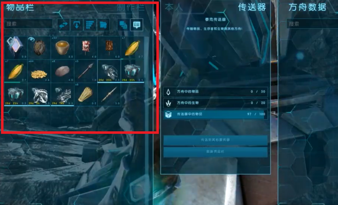 傳送時是不可以攜帶物品的,需要先把物品放光柱,傳送物品再傳送人,如果攜帶物品,物品將會消失。傳送時,會有出現提示框提示。