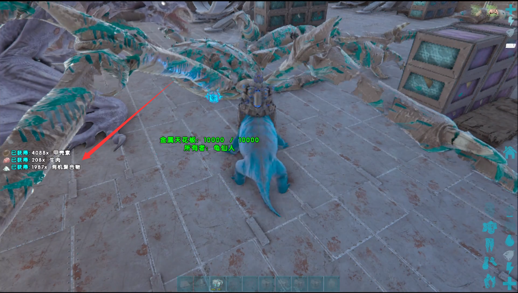 首頁 方舟:生存進化 問答 方舟:生存進化聚合物怎麼弄最快? 2023-01-13 聚合物快速獲得方法如下:1、首先我們准備一直麝足獸,可以自己培養,屬性點全加攻擊,聚會物採集點一點如下圖所示。2、聚合物可以從很多生物屍體獲得,這里推薦巨螯怪,殺死之後,騎上麝足獸咬上一口,1900 聚合物。直接起飛。