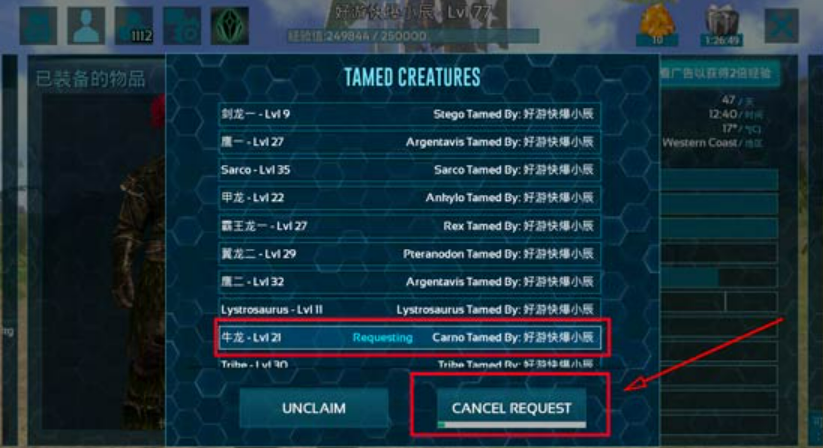 二,使用召回功能,選擇丟失的寵物,點擊召回,選擇確定,寵物便會出現在你床的附近了。