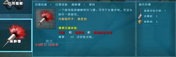 首頁 方舟:生存進化 問答 方舟麻醉鏢好用還是毒箭好用? 2023-01-14 當然是推薦麻醉鏢了,麻醉鏢傷害高,但只能裝配在長管步槍上使用,每次射擊總共可以造成442眩暈傷害,我們可以學習完麻醉鏢後直接在鐵匠台中製作強效麻醉鏢。