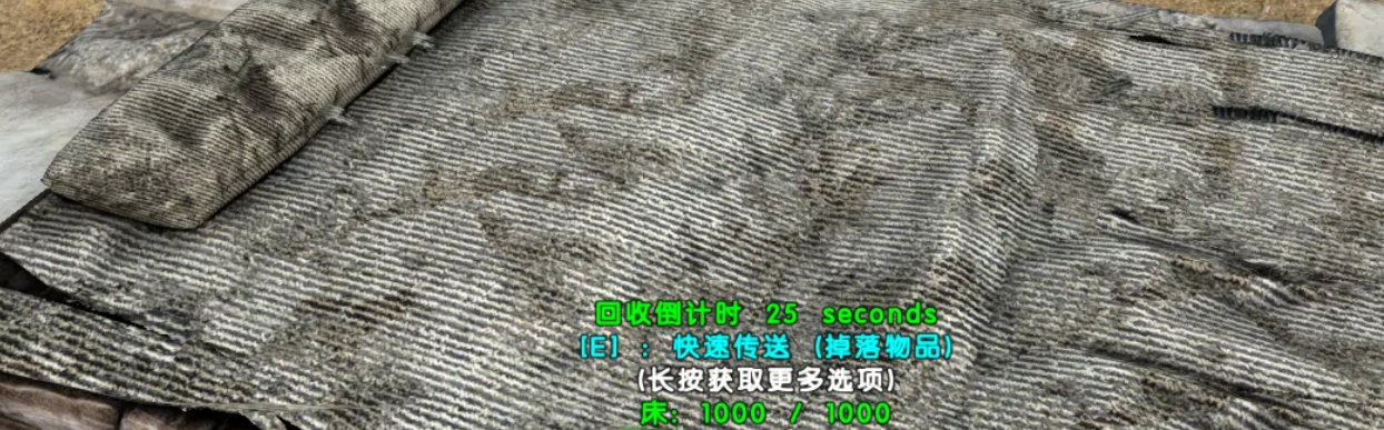 首頁 方舟:生存進化 問答 方舟床快速傳送怎麼用? 2023-01-18 1.首先,製作一些簡易床.2.做好後,將一部分床放在家裡.3.然後將另一部分床放在另一個地方.4.放好後,對床按E鍵打開傳送,打開後,選擇一個要傳送位置的床.5.選擇後,點擊傳送即可.