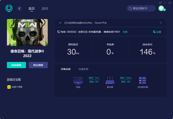 網易UU加速器的500Gbps+巨量專線寬頻,可以充分發揮帶寬潛力,輕鬆做到滿速下載,游戲包再大也不用擔心,讓你快人一步體驗游戲。同時,網易UU加速器具有覆蓋全球200多個國家和地區的眾多海外節點,可以實現專線互聯,為游戲加速時能夠綜合提速80%以上,輕鬆達到0丟包,讓你在游戲中盡情發揮,所向披靡。相信有了網易UU加速器的助力,大家在體驗《使命召喚19》時一定可以完美髮揮,輕鬆掌控戰場!