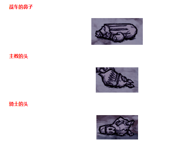 地圖上會隨機生成三種可疑的大理石,背上之後速度會減少85%,騎上牛的話,就可以不受減速效果。地圖還會生成一個大理石遺跡。新月或者月圓的時候,再來到這里,這些雕像會抖動,砸開後,會獲得3個製作戰車雕像,主教雕像和騎士雕像的圖紙。月圓砸開會是3個齒輪怪,新月會出現3個暗影boss。