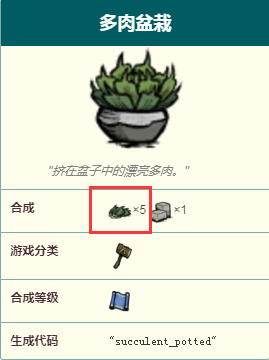 首頁 飢荒 問答 饑荒多肉植物有什麼用? 2023-01-21 1、饑荒多肉食物屬於蔬菜類食物,出現在沙漠中的綠洲,作用是被摘取後可直接食用,回復1點血量。2、另外也可以被合成觀賞用多肉盆栽,多肉盆栽藍圖可以通過綠洲湖泊垂釣獲得。