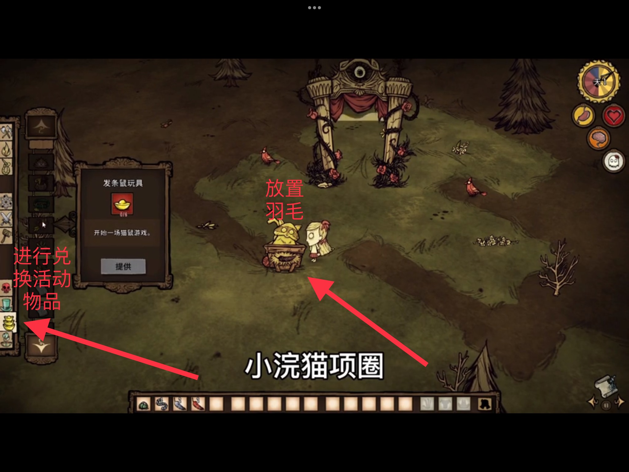 玩家可以通過建造浣貓神龕,並獻上羽毛供品,就能獲得元寶貢品然後就可以在貢品一欄里來進行兌換活動道具(如下圖所示)。