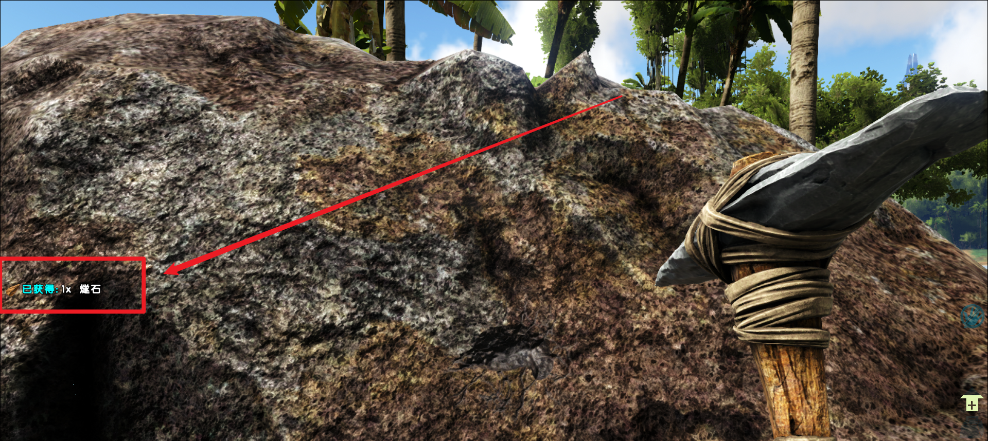 首頁 方舟:生存進化 問答 方舟:生存進化燧石怎麼弄? 2023-01-24 1、首先玩家打開游戲,雙擊游戲圖標進入單人游戲,進入游戲後,在地圖附近會看到有這樣的大石頭。2、靠近後使用製作的鎬頭左鍵開始收集,敲打後就會獲得燧石和石頭,如下圖: