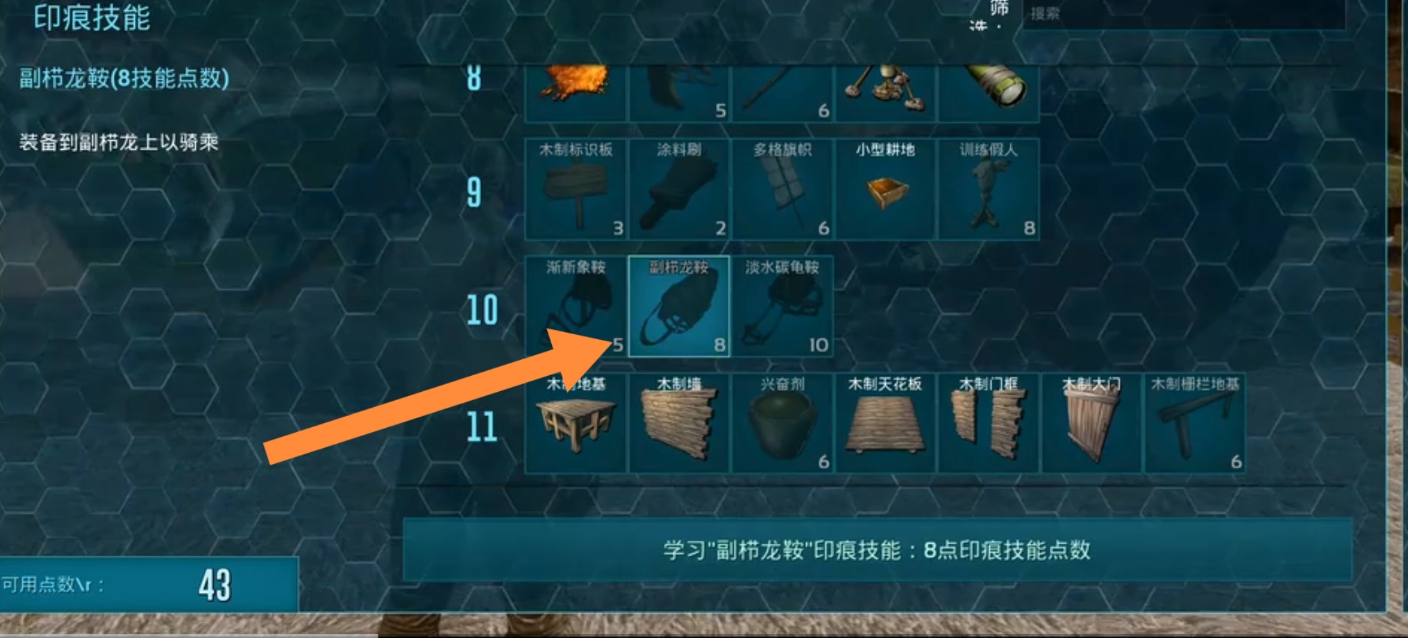 首頁 方舟:生存進化 問答 方舟副櫛龍鞍多少級解鎖? 2023-01-24 方舟副櫛龍鞍10級解鎖,如下圖所示,玩家可以在遊戲的印痕技能界面查看副櫛龍鞍的解鎖等級,解鎖後,玩家需要收集製作需要的獸皮、木頭和纖維,這樣才可以在製作欄製作副櫛龍鞍。