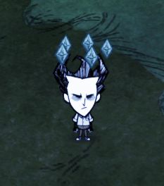 飢荒啟迪王冠擁有五個格子,可以放入蘑菇孢子調色。放入的孢子永不腐爛。佩戴時san值高於85%,那麼王冠會起飛並發光。
