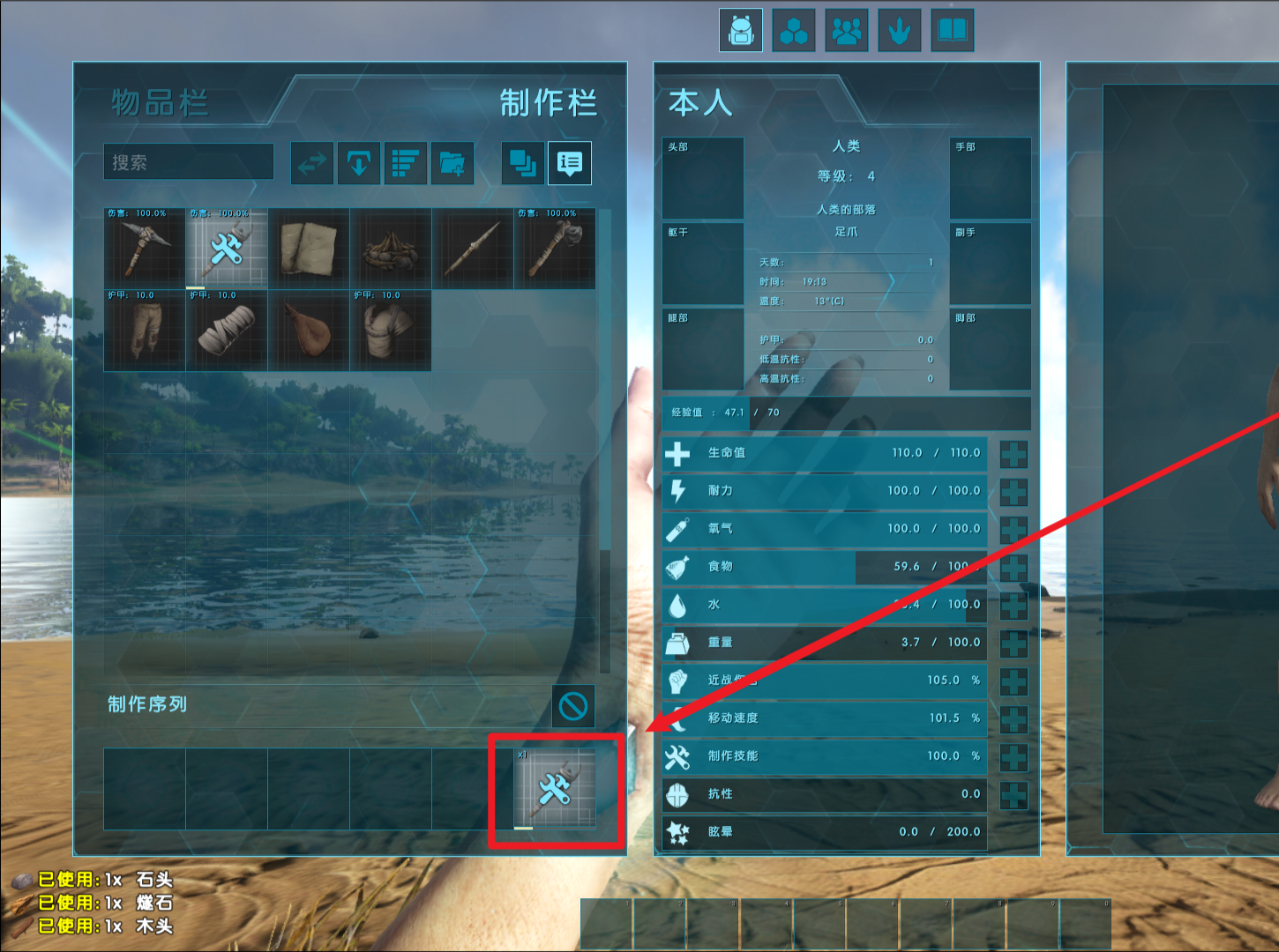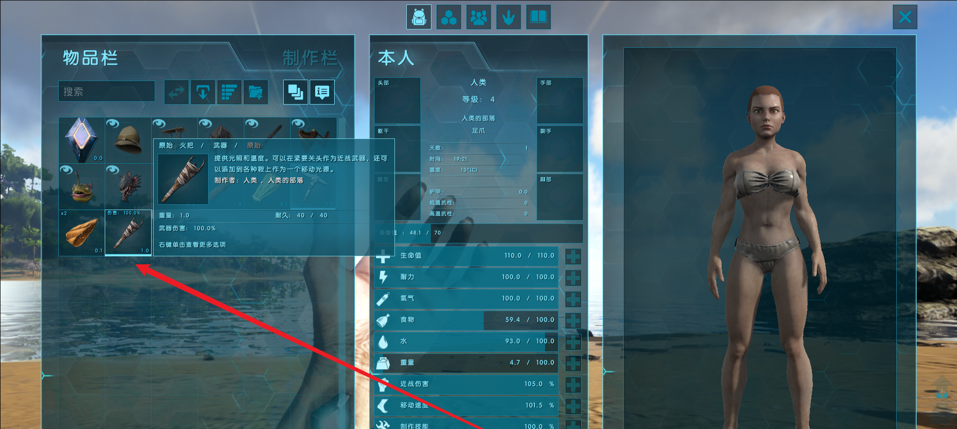 首頁 方舟:生存進化 問答 方舟生存進化火把怎麼做? 2023-01-24 1.首先在印痕里選擇火把並查看需要的材料2.准備好材料後選擇火把製作一個3.製作進度可以在下方的製作序列中看到4.製作完成後按I鍵打開物品就看到了5.右鍵選擇裝備就可以使用了