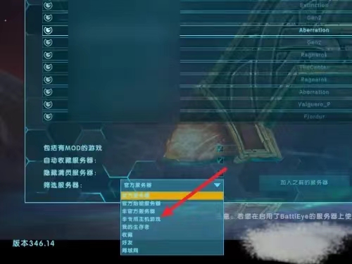 首頁 方舟:生存進化 問答 方舟生存進化怎麼找好友房間? 2023-01-25 1.打開方舟,在游戲界面中點擊選擇加入線上方舟。2.在左下角找到篩選伺服器。3.找到非專用主機伺服器,點擊選擇4.在列表中找到好友的房間,點擊選擇。5.點擊下面的加入即可進入游戲