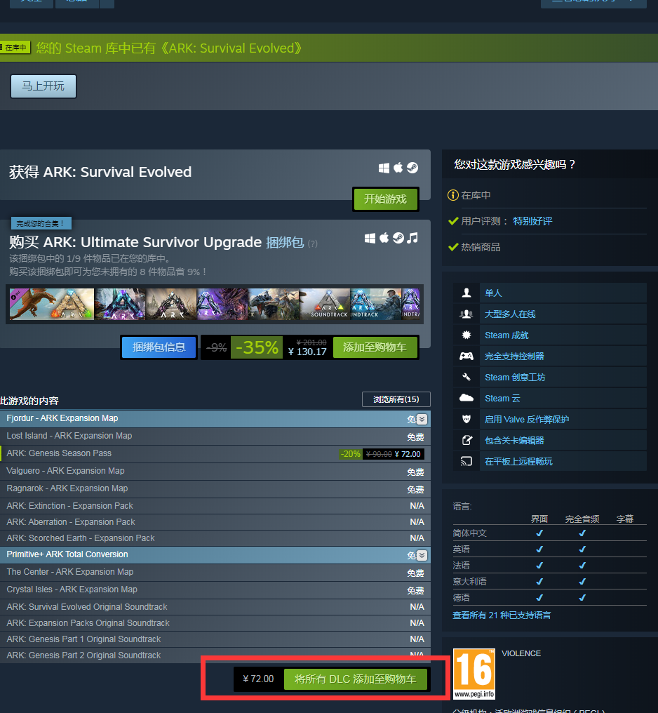 首頁 方舟:生存進化 問答 方舟:生存進化全套dlc多少錢? 2023-01-26 方舟:生存進化全套dlc需要72元。具體如下:1、首先打開steam商城搜索欄,在裡面搜索該游戲進入。2、然後在游戲界面可以看到現在購買全套dlc優惠下來需要72元。