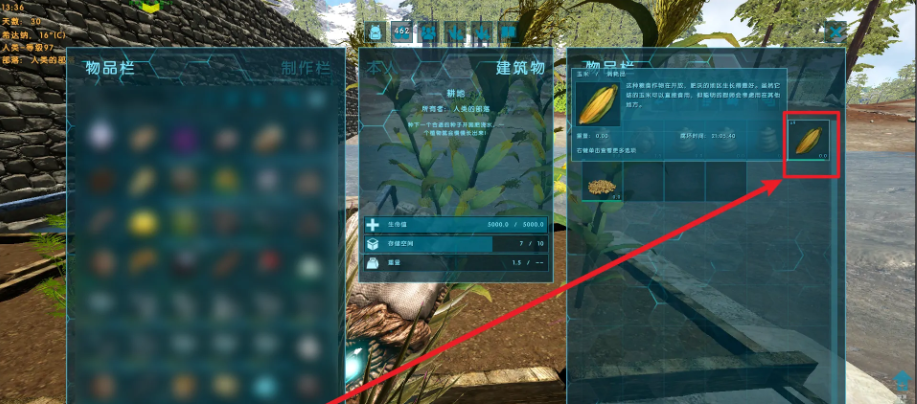 首頁 方舟:生存進化 問答 方舟玉米怎麼獲取? 2023-01-27 一、在【方舟:生存進化】中製作一片田地,准備好玉米種子播種,如下圖所示;二、打開田地物品欄後把肥料和種子放進去,如下圖所示;三、等待成熟即可,如下圖所示;四、成熟後進行收穫就可以了,如下圖所示。